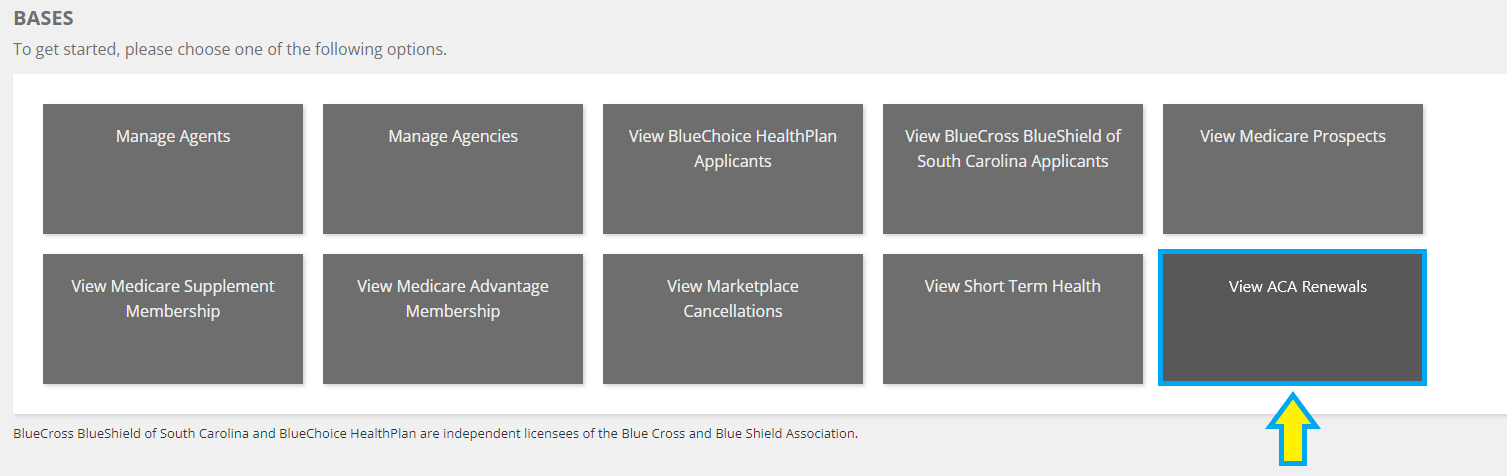 Once you log in to BASES, access the file by clicking the new View ACA Renewals tile button located on the home page.