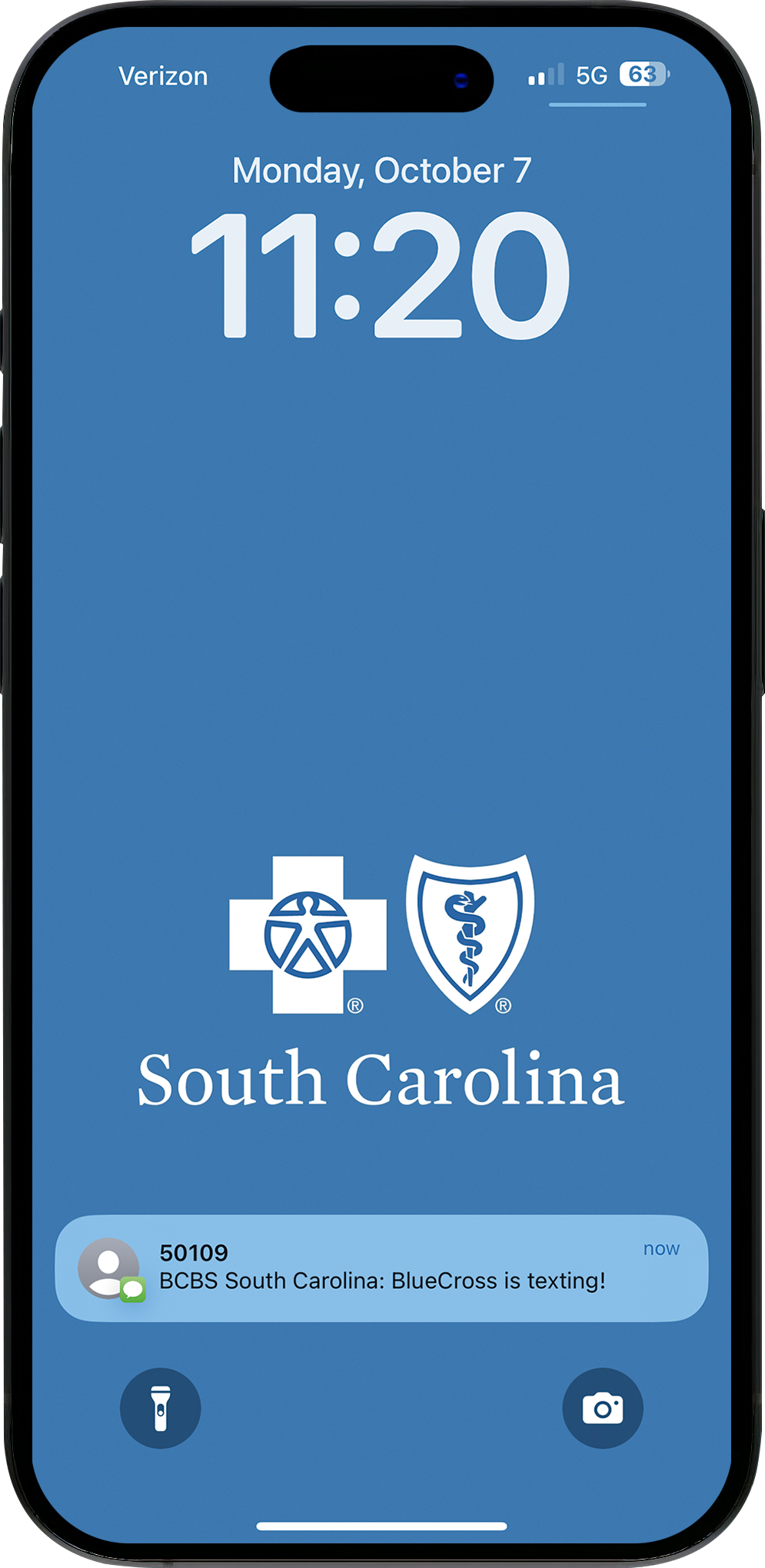 We are excited to inform you that BlueCross BlueShield of South Carolina is transitioning to a new SMS text message platform to improve and enhance our communication with members! With this new platform, members will have faster access to information directly in the SMS, without needing to log in or click a link.